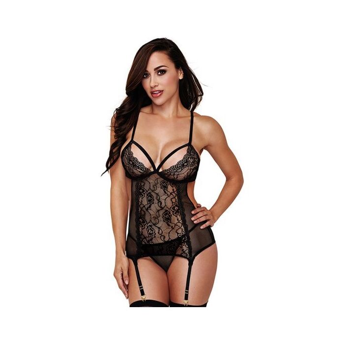2-teiliges Strumpfband aus Spitze und Netz - Spitzenbodysuit mit Strumpfgürtel