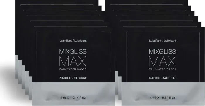 MIXGLISS MAX ist ein wasserbasiertes Gleitmittel in praktischen Monodosen. Indicado für analen Genuss mit extremer Dilatation. Empfehlenswert für Anfänger und Fortgeschrittene.