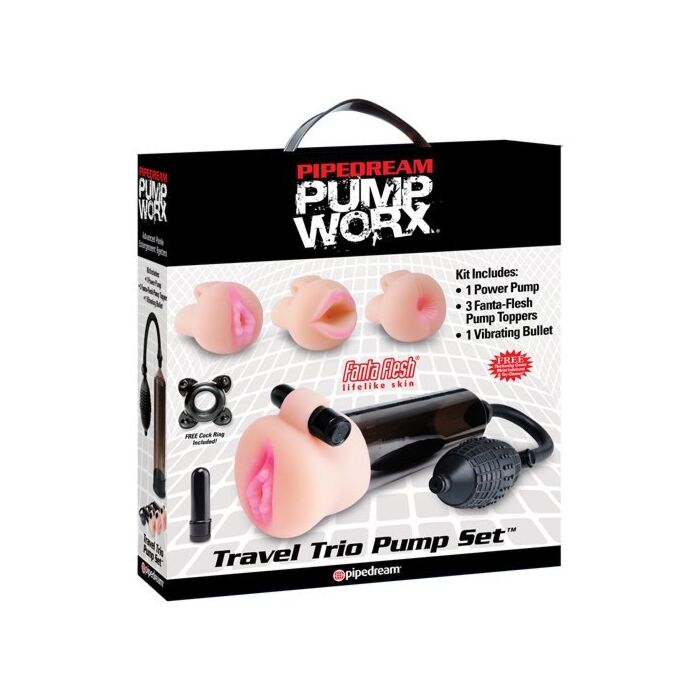 Dieses innovative Produkt kombiniert die Funktionalität eines Entwicklers mit der Aufregung eines Masturbators, alles in einem! Das Luxus-Set enthält 9 Teile, die Ihnen ein unvergleichliches Erlebnis garantieren. Es wird in einer diskreten Transportbox geliefert und enthält eine Saugpumpe, ideal für Anfänger, 3 Fanta-Flesh Köpfe, die die Empfindungen von vaginalem, analem und oralem Sex perfekt simulieren, eine leistungsstarke wasserdichte Vibrationskugel, einen Penisring und kostenlose Proben von Moist Lubricant Gleitmittel, Pump Worx Toy Cleaner Seife und verdickender Creme.
