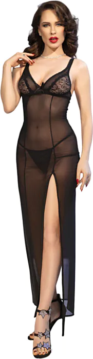 Eleganz und Sinnlichkeit sind in diesem langen Babydoll CR 4723 von Chilirose vereint. Das elastische, transparente Material schmiegt sich sanft an deinen Körper und betont deine Silhouette auf raffinierte Weise. Das Design umfasst einen verstellbaren Bh mit optimalem Halt und einen Tanga, die für einen kompletten, verführerischen Look sorgen.