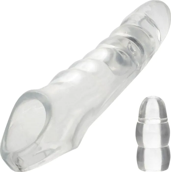 Kurz gesagt: Das Maxx Extension Kit von CALEXOTICS ist ein transparentes, dehnbares Extender-System, das Schwanzgröße und -dicke sichtbar vergrößert und dabei Halt durch einen integrierten Hodengurt bietet. Ich erkläre dir kurz, worauf es ankommt: Der Kopf ist fest, aber sehr weich gearbeitet (9,5 cm Länge), das Rohr ist hohl, die Transparenz betont das Natürlichkeitsgefühl. Die drei mitgelieferten Stopper erlauben dir, wie in der Beratung, die Passform an deine Erektion anzupassen.
