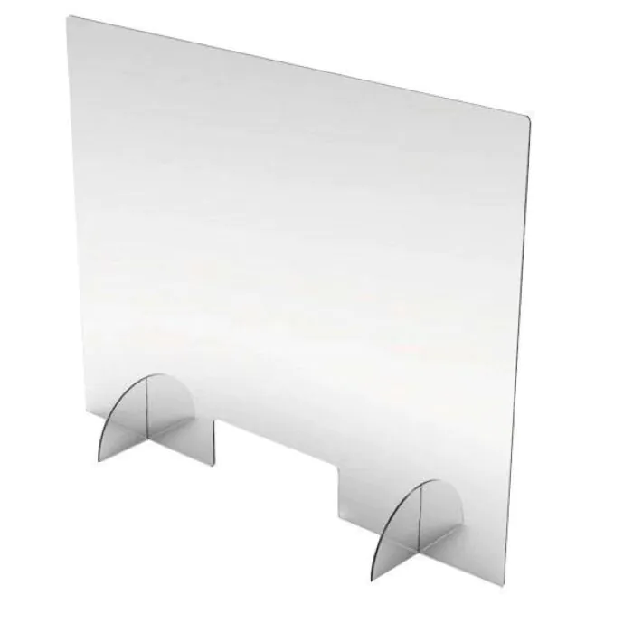 Die Schutzscheibe aus 6 mm dickem Plexiglass trennt sicher Kunden und Mitarbeiter. Praktisch für Geschäfte, einfach zu montieren und stabil.