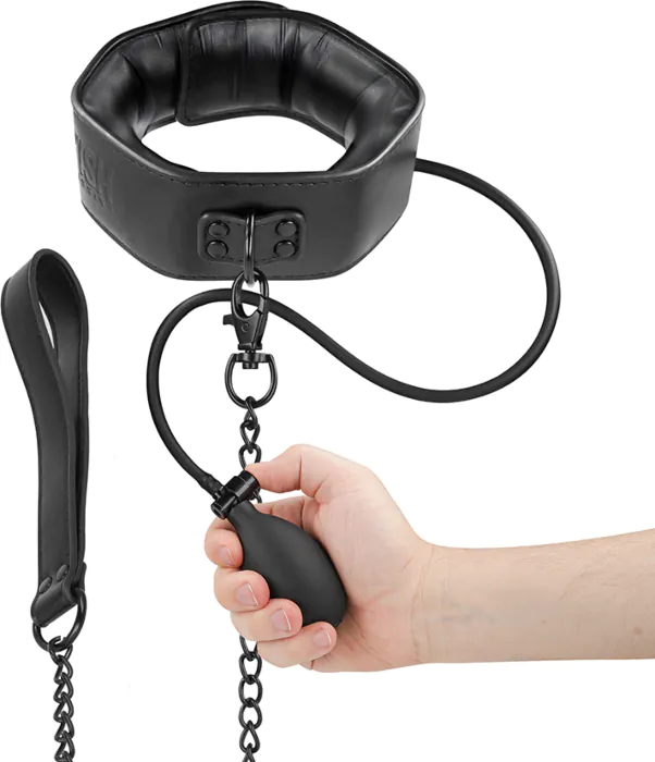 Intensiviere dein Bondage-Spiel mit diesem aufblasbaren Halsband von Fetish Submissive. Komfortabel, anpassbar und gefertigt aus hochwertigem, veganem Leder.