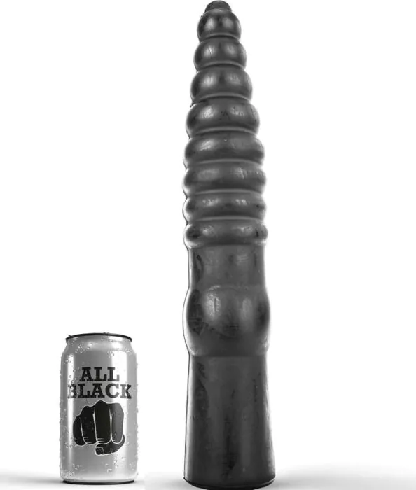 Das ALL BLACK ANAL 33 CM ist ein langer, geriffelter Anal-Dildo für Anwender, die tiefer und intensiver stimuliert werden möchten. Die auffällige Länge kombiniert mit der genarbten Oberfläche sorgt für wiederkehrende Reize bei jedem Einführen. Materialangabe: PVC (phthalatfrei), daher insgesamt etwas fester als Soft-Silikon — das spürt man beim Handling und bei der Penetration.