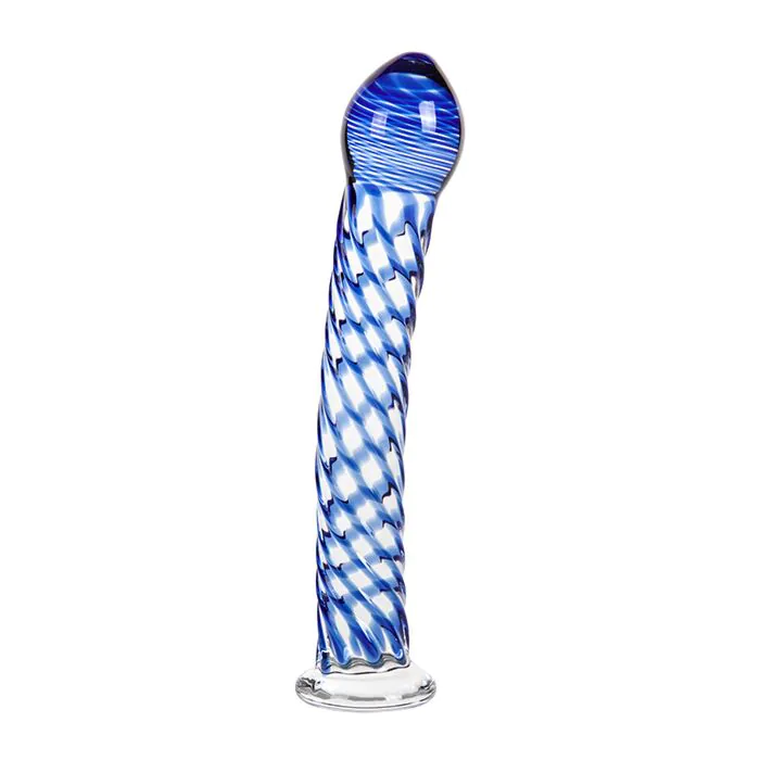 Wenn du im Erotikshop nach einem Glasdildo suchst: AQUARIUS ist ein Glasobjekt mit klarer Optik und blauen Akzenten, das sich sowohl vaginal als auch anal nutzen lässt. Die halb gekrümmte Form und die spiralförmigen Reliefs geben dir etwas mehr Reibung und gezielte Stimulation, die Spitze ist konisch geformt für ein leichtes Einführen. Die flache Basis sorgt für einen sicheren Griff und macht das Handling kontrollierter; zudem lässt sich das Toy mit einem Harness mit kleiner Anilla kombinieren.