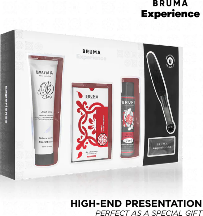 Entdecke die sinnliche Welt des BRUMA XPERIENCE Kits. Mit einem stimulierenden Gel und verführerischen Extras, indicado für entspannte Momente zu zweit.
