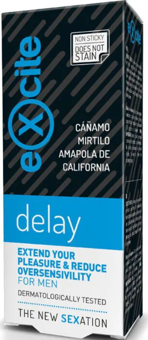 Reduzierte Empfindlichkeit und eine angenehme kühlende Wirkung – das EXCITE Delay Gel kombiniert pflanzliche Extrakte mit erfrischenden Eigenschaften. Indicado, um die Intimität zu verlängern und das Erlebnis zu intensivieren. Dermatologisch getestet und ohne Parabene, dieses Produkt ist sicher für die Anwendung in intimen Bereichen.