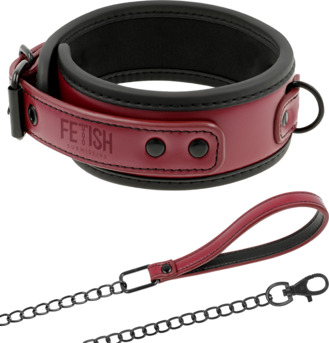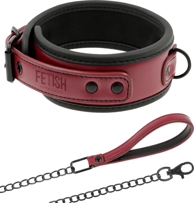 Erlebe intensive Kontrolle mit dem FETISH SUBMISSIVE DARK ROOM Halsband. Hergestellt aus veganem Leder und einer robusten Metallkette, indicado für erfahrene BDSM-Spieler.