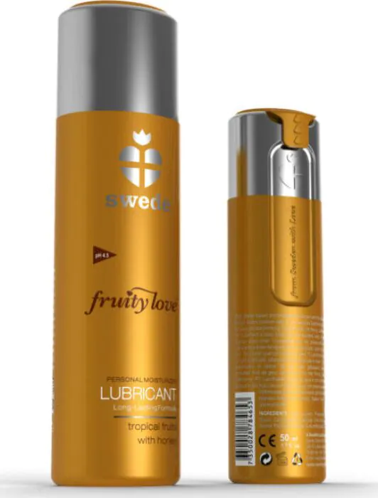 Das SWEDE Fruity Love Gleitgel ist ein wasserbasiertes Intimprodukt mit Tropenfrucht‑und Honignote. Es wurde so formuliert, dass es die empfindliche Schleimhaut schont: pH‑Wert 4,5 hilft, das vaginale Gleichgewicht nicht zu stören und die Rezeptur ist nicht reizend. Ein wichtiger Pluspunkt für Paare: die Inhaltsstoffe entsprechen denen der Lebensmittelindustrie, kleine Mengen sind nicht toxisch bei versehentlichem Verschlucken.