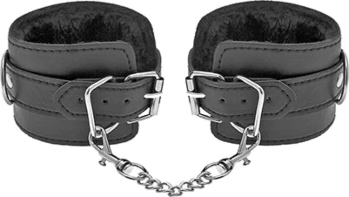 Weiche, verstellbare Handschellen von S Pleasures für Einsteiger ins Bondage. Die Außenseite aus mit Kunstleder überzogenem Polyurethan schützt die Haut vor Scheuern; die Metallkette sorgt für klassische Optik und Stabilität. Nutze sie für Handgelenke oder als Fußfesseln, wenn du sanfte, unkomplizierte Bondage ausprobieren willst.