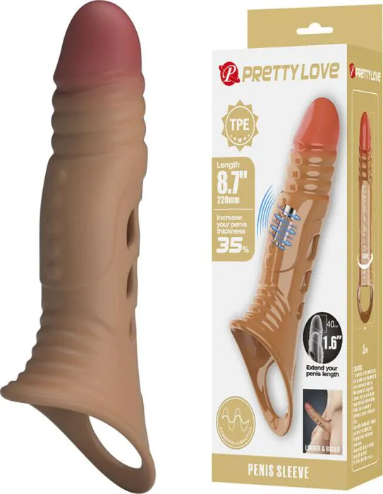 Die elegante Hülle für Penis von Pretty Love bietet intensive Vibration und ein realistisches Gefühl, ideal für längeren und kräftigeren Sex.