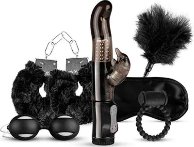 LoveBoxxx Black es un kit de regalo lleno de divertidos juguetes. Es perfecto para principiantes y contiene juguetes para mujeres y para jugar en pareja. Este conjunto se compone por: Esposas de metal con llaves. Bolas vaginales con pesos. Anillo vibrador para el pene. Vibrador de conejo. Antifaz. Pluma estimuladora.