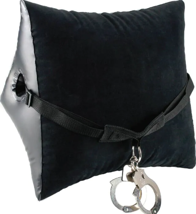 La almohada inflable con esposas permite llevar la exploración sexual a un nuevo nivel. Ideal para quienes buscan innovar en sus prácticas románticas.