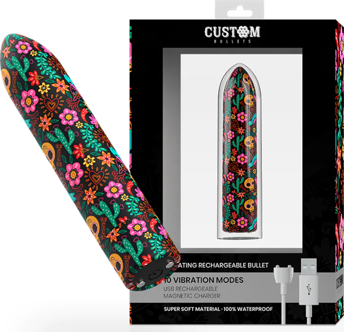 10 Vibrationsmodi für gezielte Stimulation und pure Lust. Die CUSTOM BULLETS BALA RECARGABLE SKULL aus weicher Silikon und ABS bietet eine angenehme Haptik und ist mit einem leistungsstarken Motor ausgestattet.