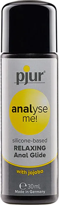 Pjur Analyse Me! Relaxing ist ein silikonbasiertes Anal-Gleitgel mit Jojoba‑Extrakten, das Entspannung fördert und sehr lange Gleitfähigkeit liefert. Entwickelt für analen Verkehr, hilft es speziell Einsteigern bei der Dehnung und reduziert Reibung. Kondomverträglich und praktisch in der 30‑ml‑Größe für unterwegs. Wenn du viel mit Silikonspielzeug arbeitest, nimm zusätzlich ein wasserbasiertes Gleitmittel zum Schutz der Toys.