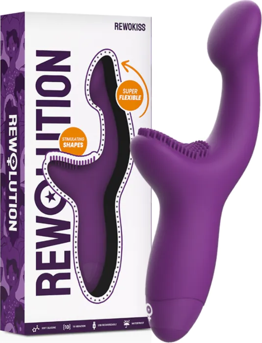 Erlebe intensive doppelte Stimulation mit dem Rewolution Rewokiss. Sein flexibles Design und die 10 Vibrationsmodi bieten aufregende Möglichkeiten für deine Lust.