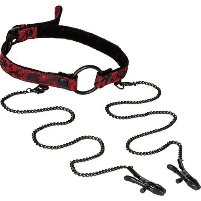 Luxuriöser Knebel aus der Scandal-Kollektion mit anregenden Klammern, die durch eine 59 cm lange Kette verbunden sind.