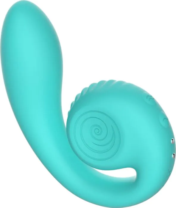 Entdecken Sie den türkisfarbenen Dual-Stimulator Snail Vibe Gizi bei Loviux! Dieser revolutionäre Rabbit Vibrator ist einzigartig und bietet ein völlig neues Erlebnis. Sein einzigartiges Design passt sich den Kurven Ihres Körpers an, um den perfekten Winkel und die optimale Tiefe für höchste Lust an Ihrem G-Punkt zu finden. Aber das ist noch nicht alles, dieses erotische Spielzeug geht noch einen Schritt weiter und ermöglicht es Ihnen auch, den A-Punkt zu stimulieren, und führt Sie dank der innovativen Slide'n'Roll-Technik zu einem intensiven Höhepunkt.