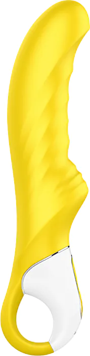 Das ist ein weicher, wiederaufladbarer Vibrator von SATISFYER, der auf Punkt‑G‑Stimulation ausgelegt ist und gleichzeitig eine sanfte klitorale Ansprache ermöglicht. Spürbar anders ist die Oberfläche: das sogenannte Liquid‑Silikon fühlt sich sehr seidig an und liegt warm auf der Haut. Der Motor ist so positioniert, dass die Vibrationen über den gesamten Schaft verteilt werden — das merkst du als gleichmäßige, kraftvolle Massage, nicht nur als stumpfes Vibrieren an einer Stelle. Die Ausführung in sonnigem Gelb macht ihn optisch auffällig, ohne aufdringlich zu sein.