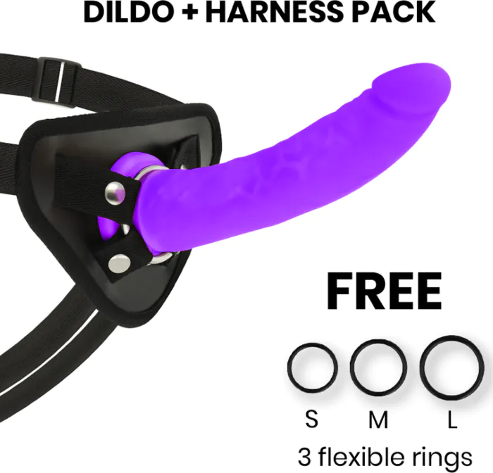 Das ist ein klassisches Strap-On-Set: ein 20 cm langer Dildo aus medizinischem Silikon plus Harness und Befestigungsring. Ich sage dir offen: hier kaufst du Materialqualität – medizinisches Silikon aus den USA, 100% frei von Phthalaten und Latex, das sich weich anfühlt und schnell auf Körpertemperatur kommt. Im Vergleich zu günstigen Gummi- oder PVC-Teilen ist das sauberer in der Anwendung und besser für sensible Haut.