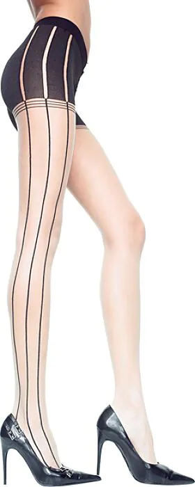 Diese Pantys von Music Legs setzen mit feinen Längsstreifen und schwarzem Seitenakzent einen dezenten, aber wirkungsvollen Akzent. Gut geeignet für alle, die ihren Look modisch betonen wollen, ohne auffällig zu wirken. Perfekt für Outfits mit Rock oder Kleid; Material- und Größenangaben macht der Hersteller nicht, daher bitte auf Passform achten.