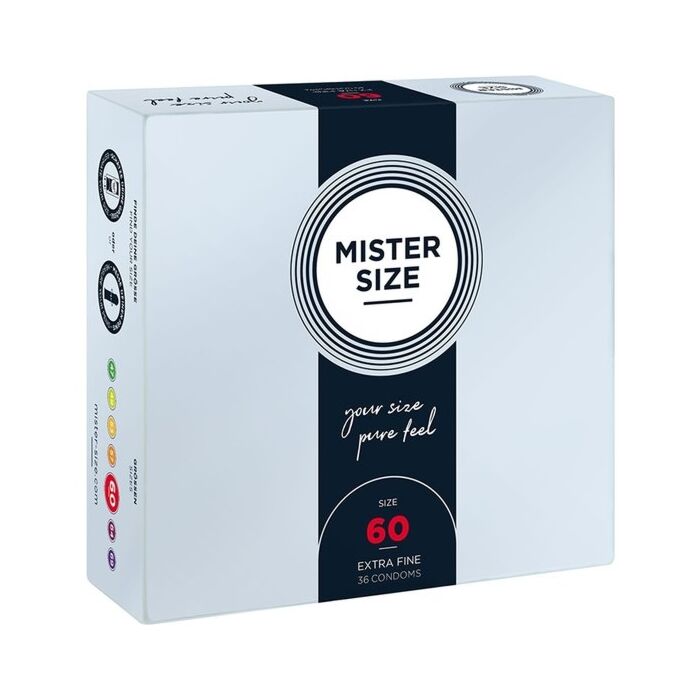 ¡MISTER SIZE 60 (PACK DE 36) - ¡FÜR DIE, DIE ES GROSS UND ENG BEVORZUGEN! Kondome, die abrutschen, drücken oder einfach nicht passen? Vergiss diese Probleme mit Mister Size 60! Denn was ist das Wichtigste an einem Kondom? Dass es perfekt sitzt wie ein Handschuh! Warum Mister Size 60 wählen? - **Maßgeschneiderter Sitz:** Du würdest schließlich auch keine Unterwäsche in zwei Größen kleiner tragen, oder? Deine Kondome verdienen ebenfalls eine maßgeschneiderte Passform. Mit Mister Size 60 wirst du das Gefühl haben, dass es nur für dich gemacht wurde. - **Mehr Vergnügen:** Sein extra dünnes Design ermöglicht dir ein einzigartiges Gefühl von Sensibilität. Du wirst alles spüren und nichts fürchten! - **Sicherheit an erster Stelle:** Mit Mister Size 60 kannst du unangenehme Verrutschen oder unerwartete Brüche vergessen. - **Verschiedene Größen:** Mit 7 verschiedenen Größen passt sich Mister Size allen an. Denn jeder verdient es, den Komfort und Schutz eines maßgeschneiderten Kondoms zu genießen! Warum ist die Größe wichtig? In einer Welt, in der die Größe wirklich zählt, sticht Mister Size 60 mit seinen 60 mm Breite hervor. Ideal für diejenigen, die eine größere und bequemere Größe suchen. Zufriedenheit ist das Mindeste - wähle Mister Size für ein überlegenes Erlebnis! Lass nicht zu, dass ein schlecht sitzendes Kondom den Moment ruiniert! Mit Mister Size 60 wirst du bei jedem Treffen Komfort, Sicherheit und Gefühl genießen. Hol dir dein Pack mit 36 extra dünnen Kondomen und beginne, wie nie zuvor zu genießen!