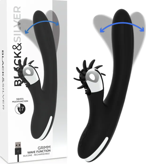 Der Grimm Wave Function von BLACK&SILVER kombiniert eine fingerähnliche Wave‑Bewegung mit starker Vibration für gezielte G‑Punkt‑ und Klitorisstimulation. Superweiches Silikon, ergonomische Form und USB‑Ladung machen ihn zu einer robusten Wahl für Nutzerinnen, die variantenreiche Intensität und Präzision wollen. Inklusive 6 ml Wasserbasis‑Gleitgel als Probe.